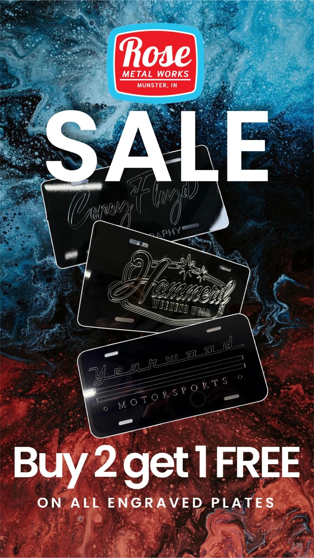 For the remainder of the year if you buy two custom plates you will get a third for FREE. Designs can be different, please visit our online store to order yours today. If you have images/files to send us. Please email them to ROSEMETALWORKS@YAHOO.COM
